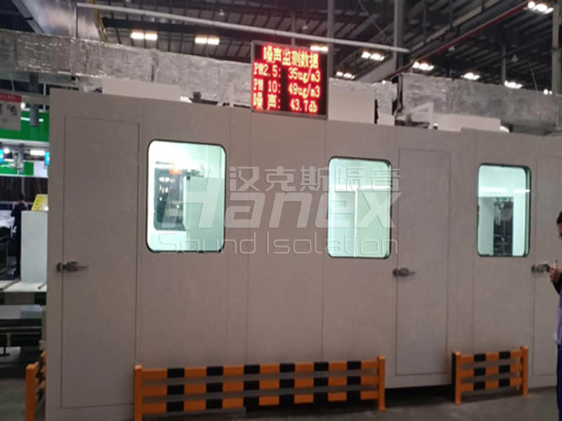 根據(jù)現(xiàn)場(chǎng)情況、原隔音房尺寸、布置、降噪目標(biāo)及設(shè)備工藝要求,結(jié)合我們漢克斯隔音以往同類型工程噪聲控制經(jīng)驗(yàn),我設(shè)計(jì)師采用對(duì)舊隔音房整體外加裝一層隔音房的方案進(jìn)行降噪。