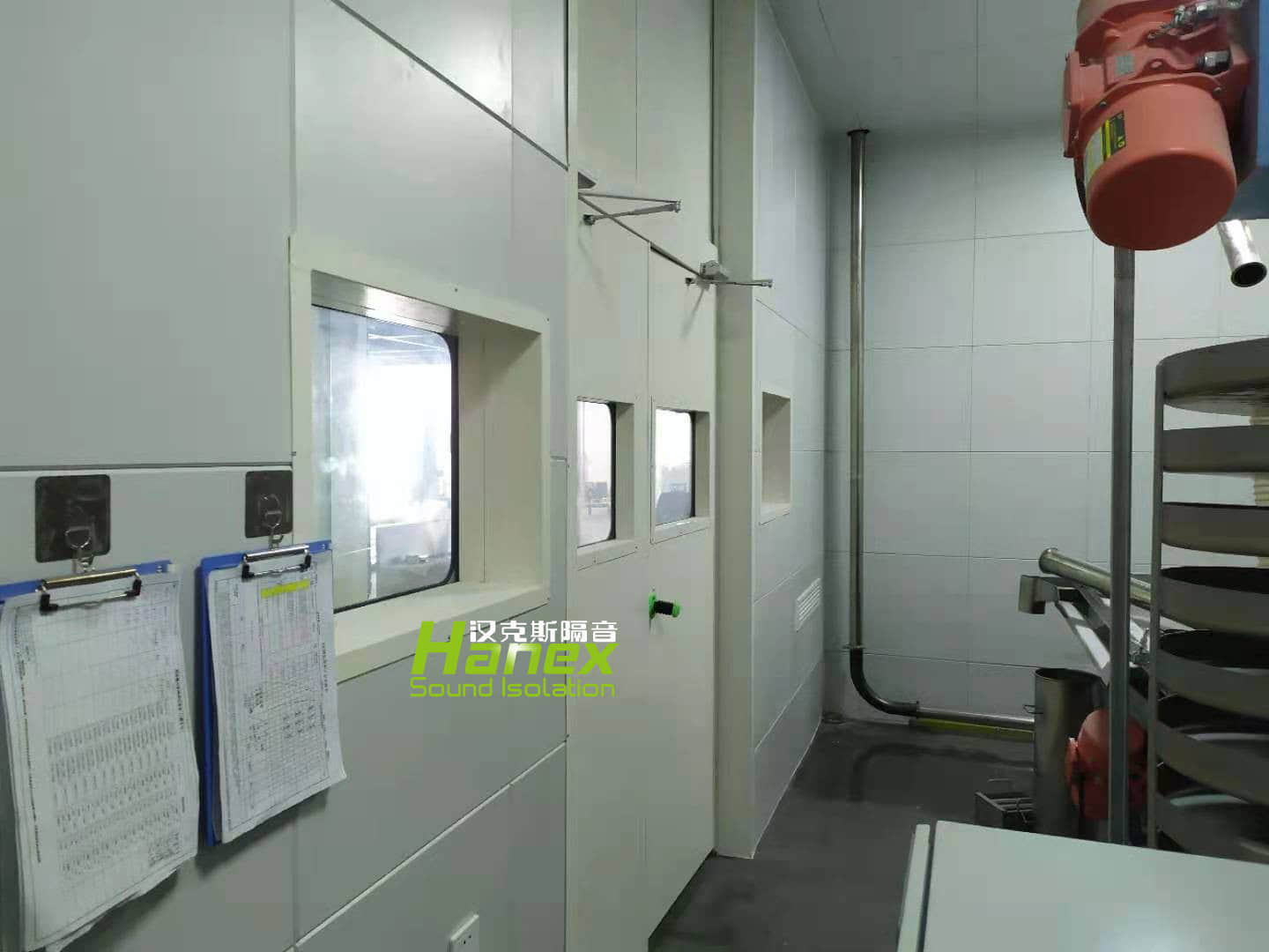 本松新材料技術(shù)(蕪湖)有限公司隔音房采用復合鋼制吸隔聲板模塊結(jié)構(gòu),頂板設(shè)計80mm厚,四面?zhèn)劝逶O(shè)計80mm厚。噪聲控制設(shè)備設(shè)施安裝后不影響設(shè)備的正常運行,不影響設(shè)備的通風散熱,嚴格符合相關(guān)的安全規(guī)范;