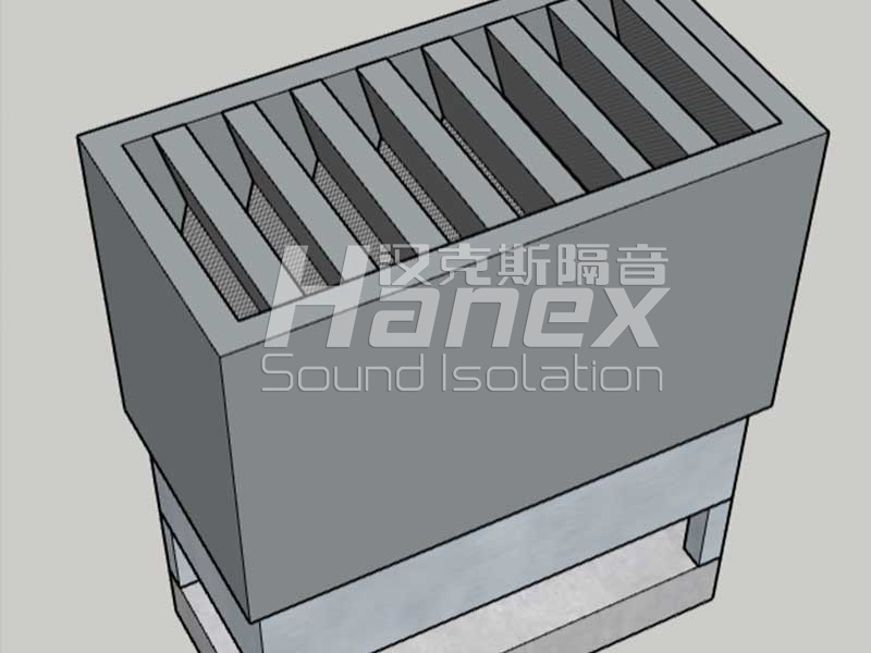 (3)消聲器外壁厚度選用80mm-100mm厚吸隔聲模塊板,模塊板結(jié)構(gòu)為:1.2mm以上冷軋鍍鋅鋼板+阻尼+容重48kg/m3以上多纖維玻璃棉+玻璃絲布包裹+厚度0.8mm以上冷軋鍍鋅穿孔板。